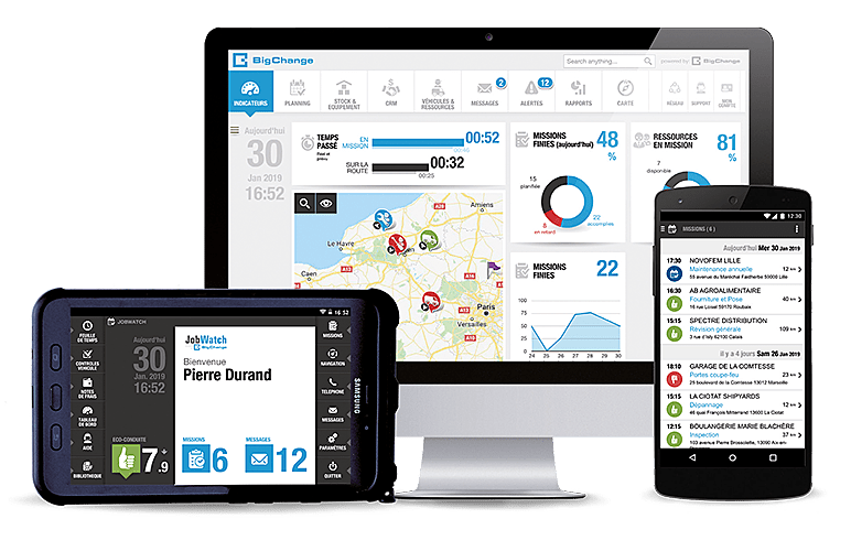 | Big Change | Gestion d’intervention complète de devis à la facturation. Favorise travail collaboratif entre équipes mobiles, gestion et clients. | – Complet et modulable – Application mobile 100% paramétrable – Équipe dédiée pour la mise en service – Présentation vidéo | 4,4 / 5 |